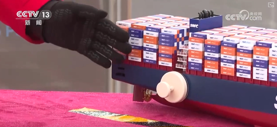 工作人员介绍,这一套系统让传统方式30分钟的作业时间缩短到在30秒。您可别小看这30秒的时间,预计全年缩短靠泊时间超200小时,相当于一个泊位全年新增10余条船的作业产能。
